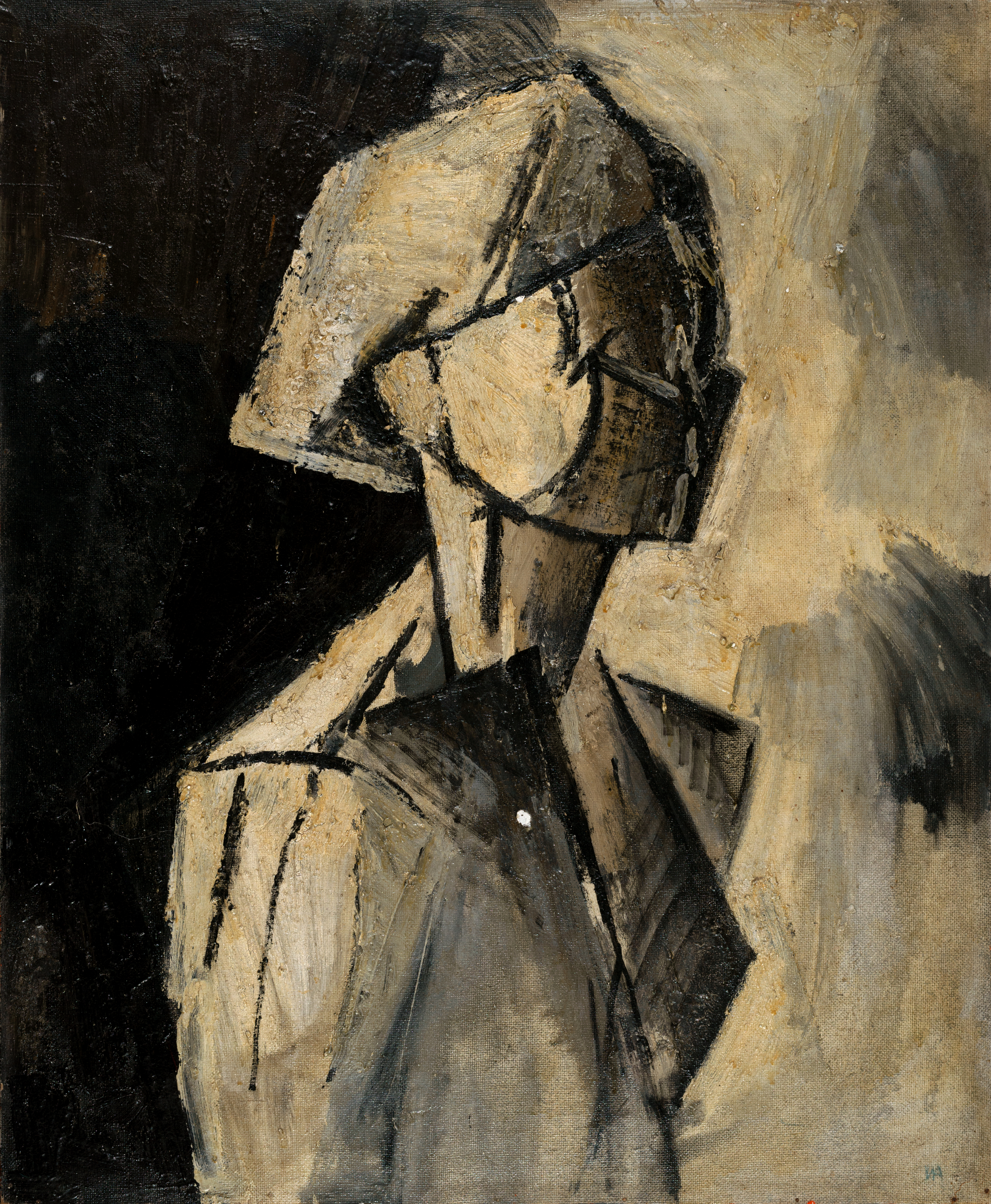 Kunstharz, Farbpigmente auf oranger Holztafel